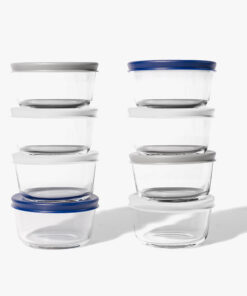 • Set Includes: (8) 7 ounce capacity glass food containers, (8) BPA-free plastic lids for secure sealing and freshness, with additional 8 multi color lids to mix and match your set!